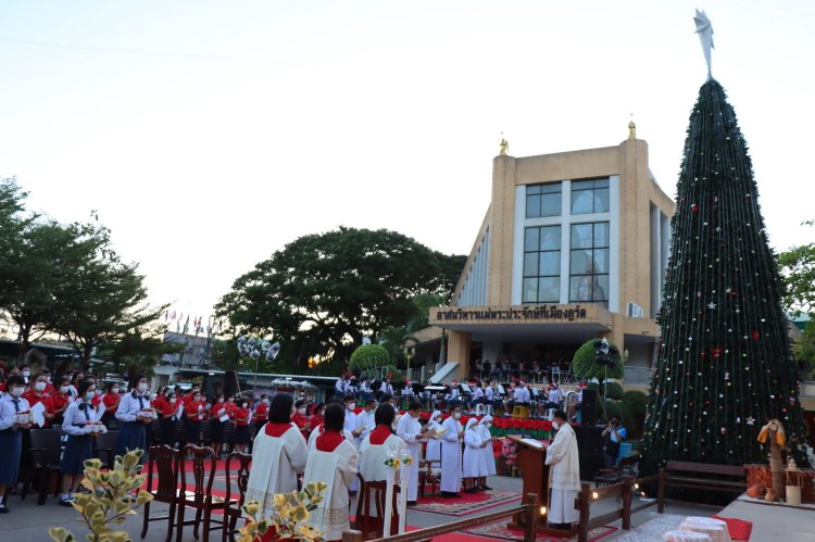 ภาพบรรยากาศวจนพิธีกรรมเสกถ้ำพระกุมารและเปิดไฟต้นคริสต์มาส